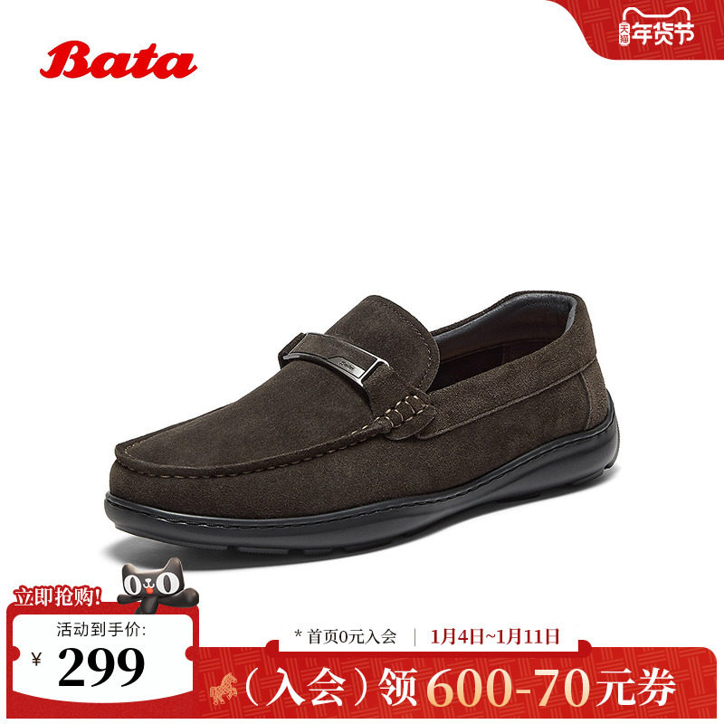 Bata乐福鞋男2025秋季商场新款英伦牛剖皮商务通勤一脚蹬30671CM5