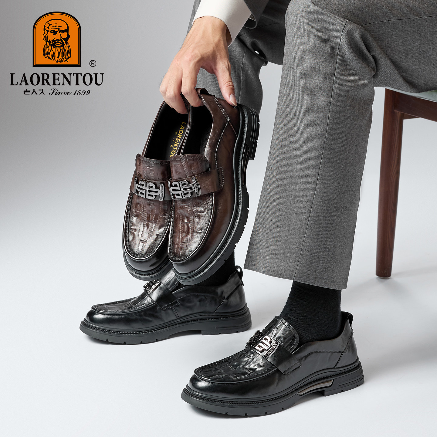 【柔韧牛皮】老人头乐福鞋男英伦风单鞋商务休闲皮鞋一脚蹬男鞋子