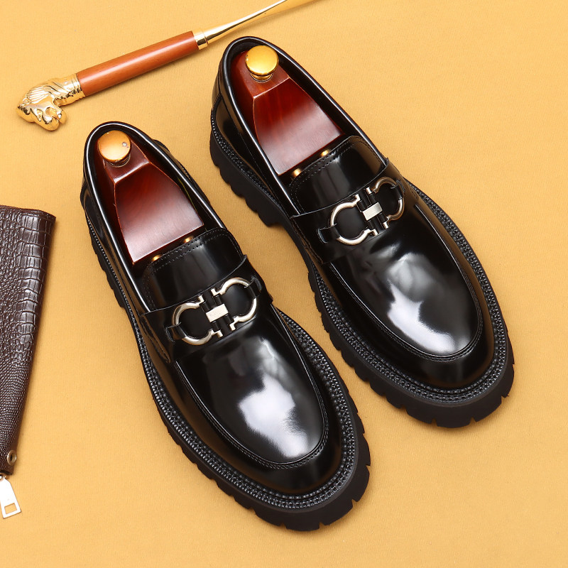 新款时尚厚底乐福鞋男英伦透气圆头休闲皮鞋复古潮流一脚蹬男鞋婚