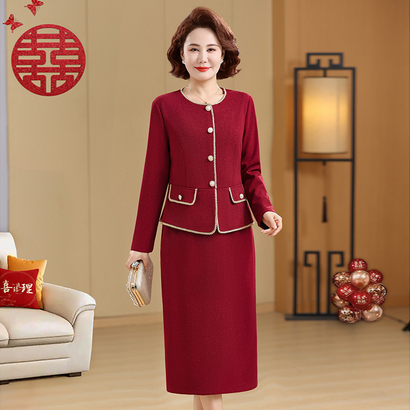妈妈春秋装结婚礼服套装新款中老年女时尚喜婆婆婚宴装喜服两件套