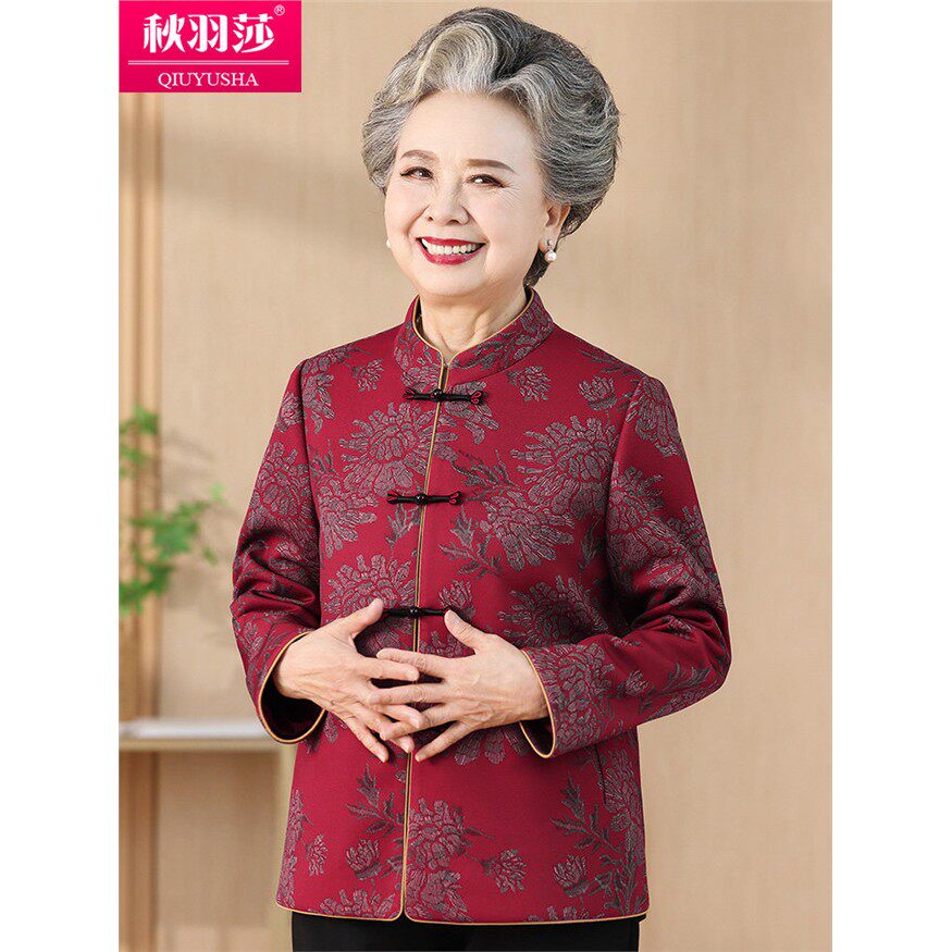 奶奶春秋装外套中老年人唐装女妈妈款婚礼喜庆洋气上衣老太太衣服