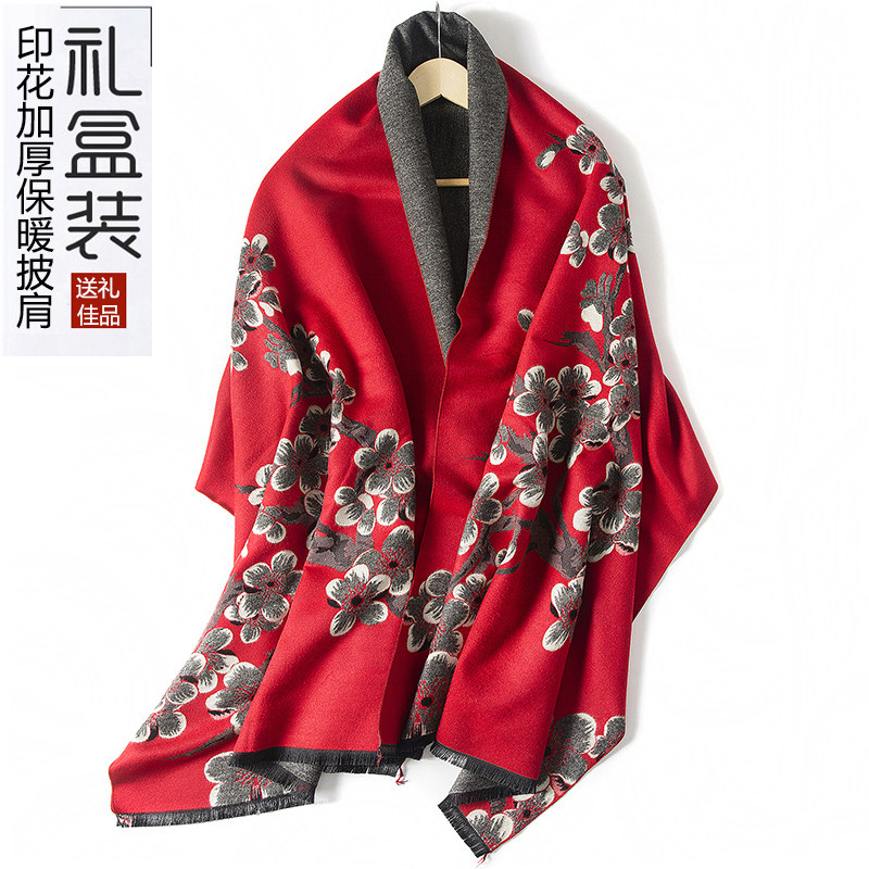 中老年人老人围巾披肩两用婚礼秋冬季女外搭中年妈妈本命年礼盒装