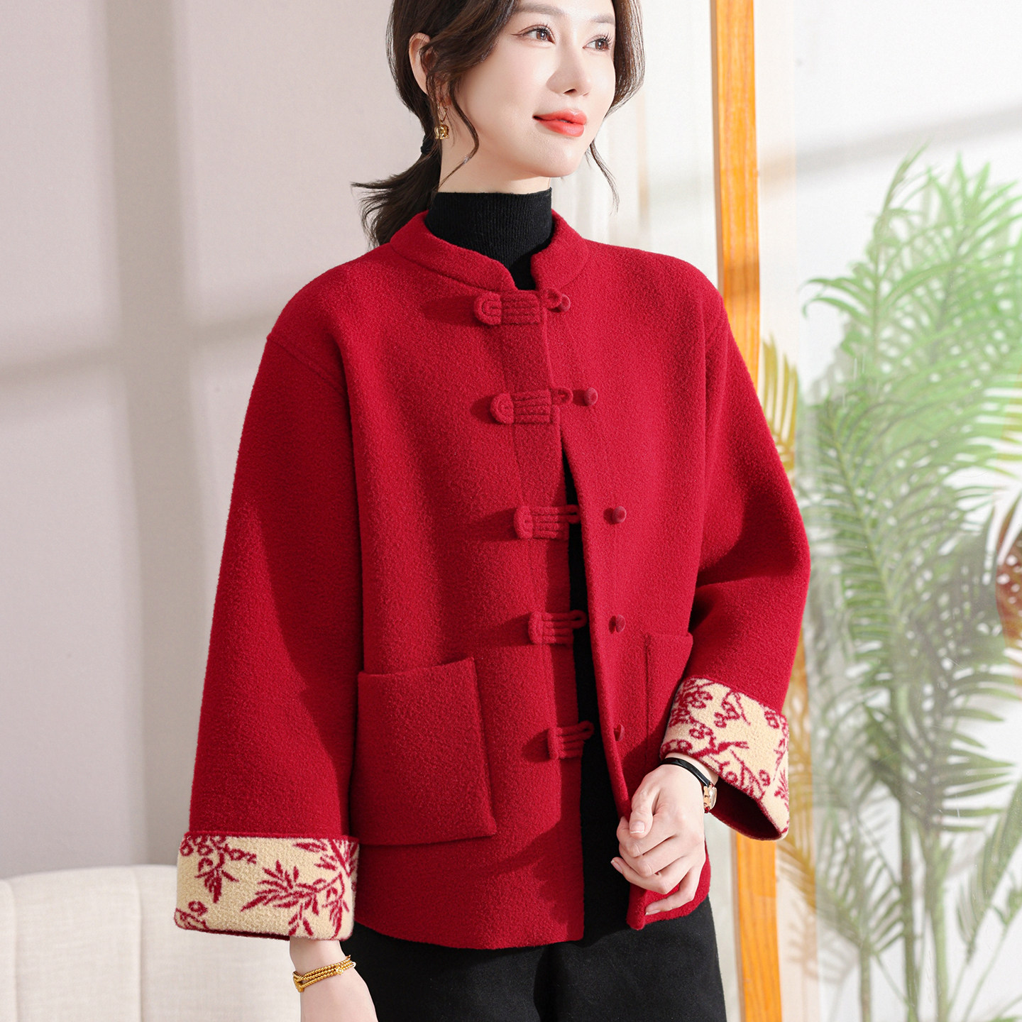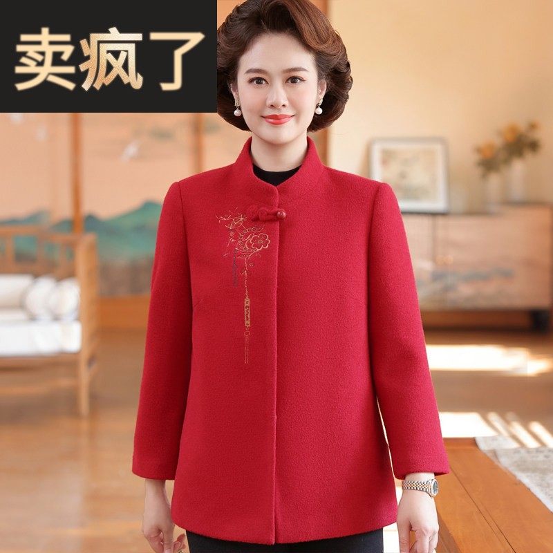 婚礼妈妈冬装中式毛呢外套本命年宴会上衣中老年女喜婆婆新年衣服