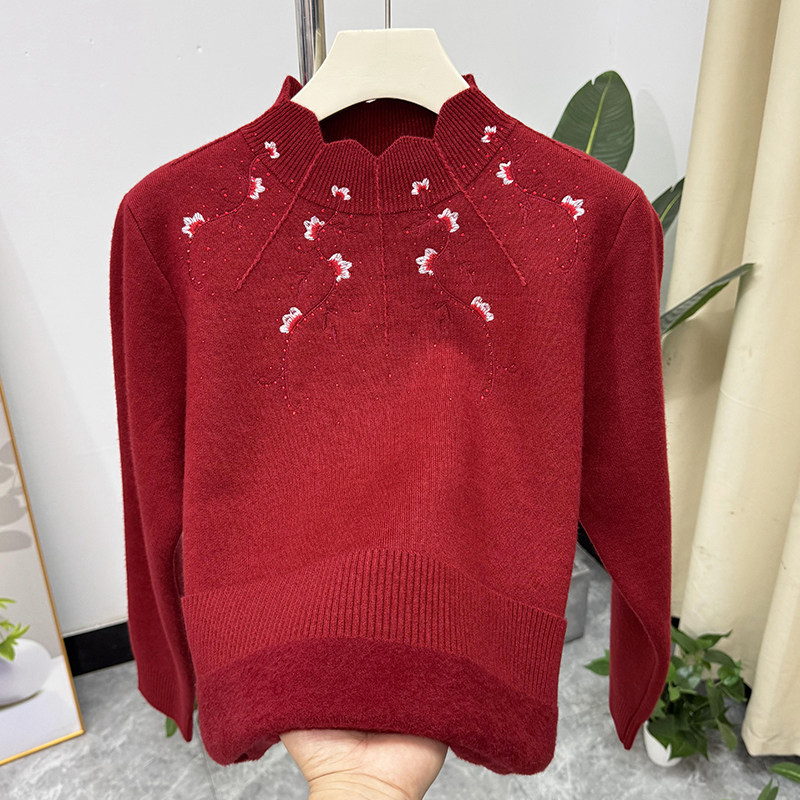 妈妈冬装红色加绒加厚毛衣2025新款中老年女士半高领打底衫婚礼装