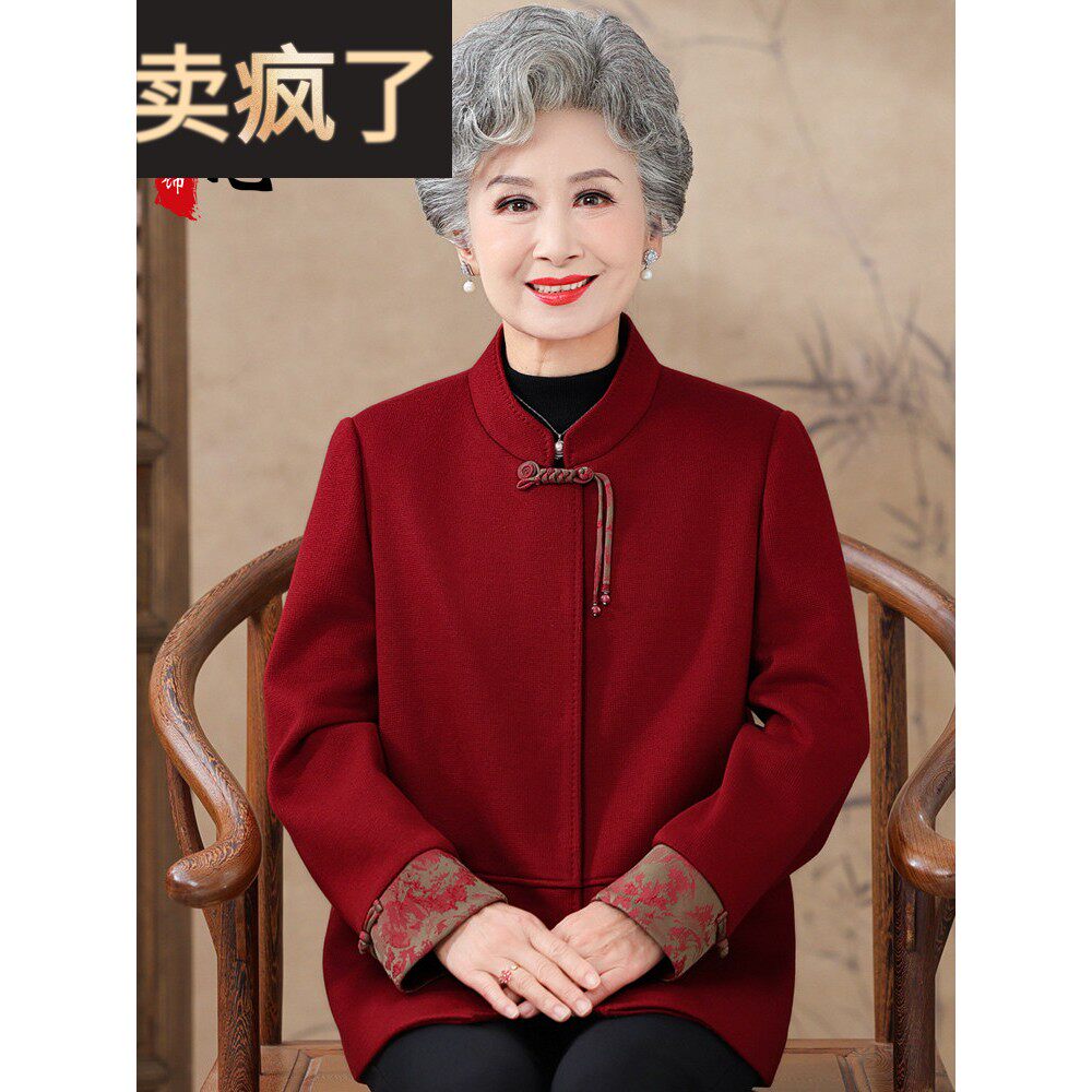 中老年奶奶秋装毛呢外套女中式妈妈款唐装喜婆婆春秋婚礼老人衣服