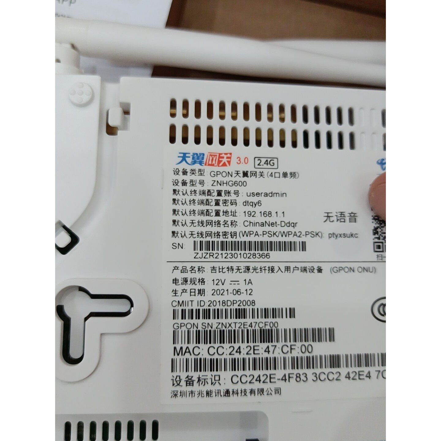【议价产品】宽带猫光猫兆能ZNHG600 GPON千兆单频无线光纤猫天翼