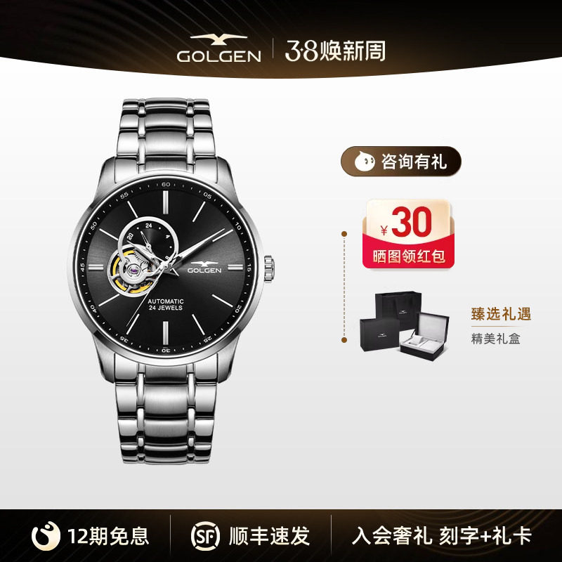 【女神节礼物】古尊镂空机械表手表男商务自动机械腕表男防水男表