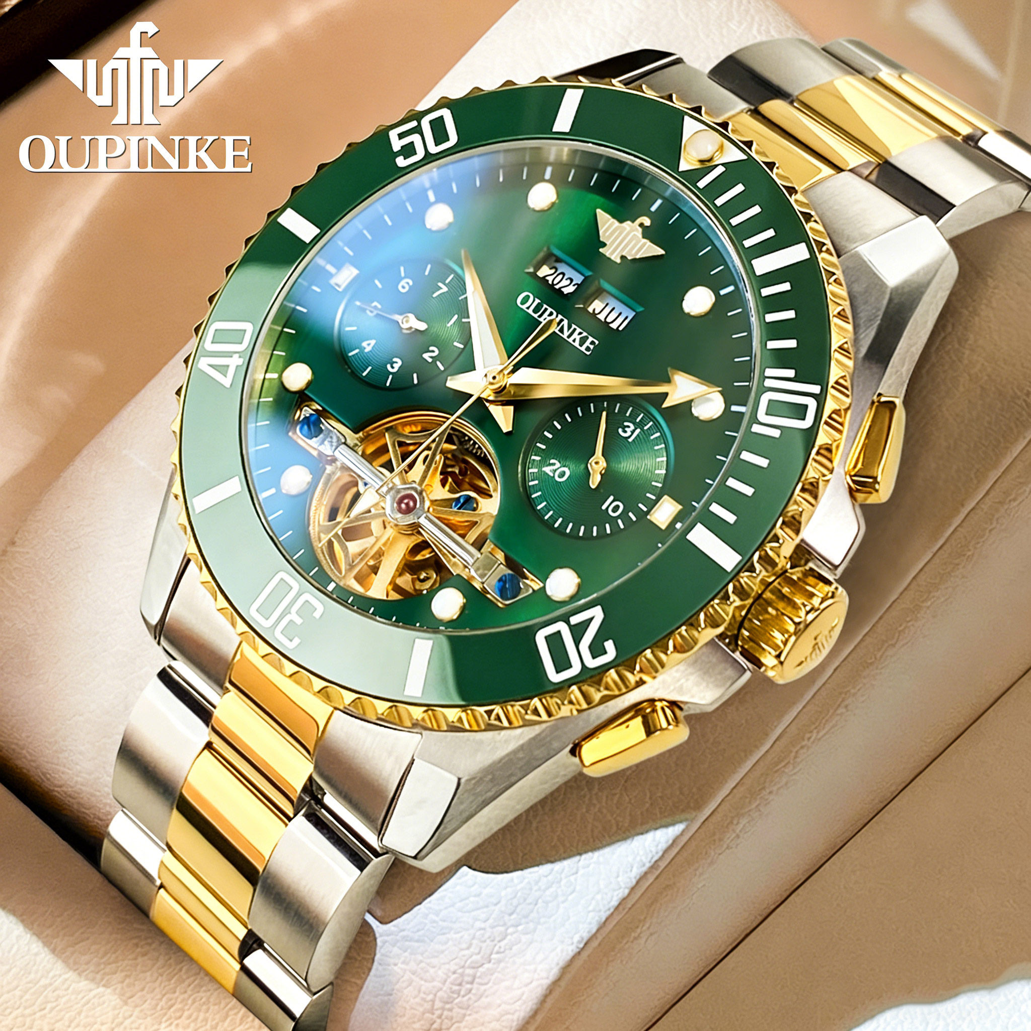 OLEVS欧利时 瑞士轻奢手表男款全自动机械表钢带商务夜光防水男表