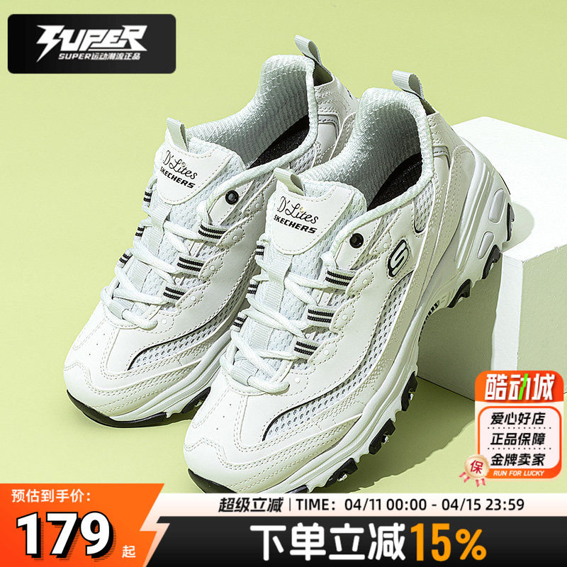 斯凯奇女鞋春季网面熊猫鞋运动鞋厚底老爹鞋透气小白鞋学生休闲鞋