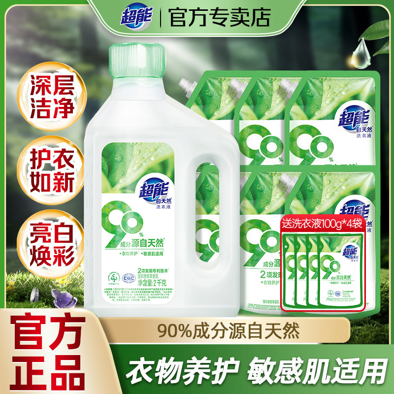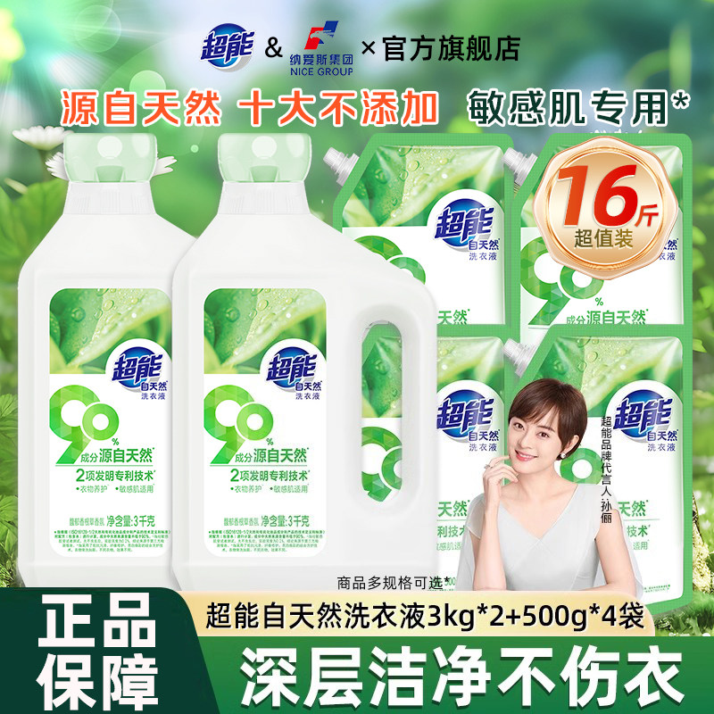 超能自天然洗衣液敏感肌适用洗衣家用实惠装除菌除螨去渍官方正品