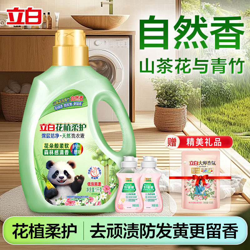 立白茶籽除菌天然洗衣液除螨洁净山茶幽香大容量3kg公斤家庭装1kg