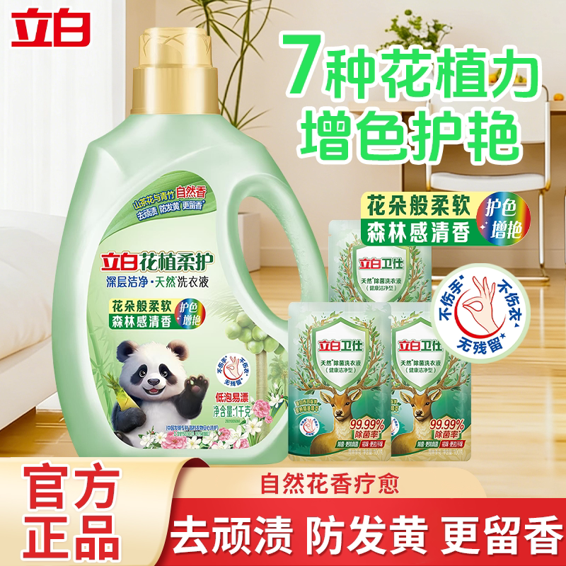 立白花植柔护天然洗衣液去渍留香防串色不伤手无磷深层洁净洗涤剂