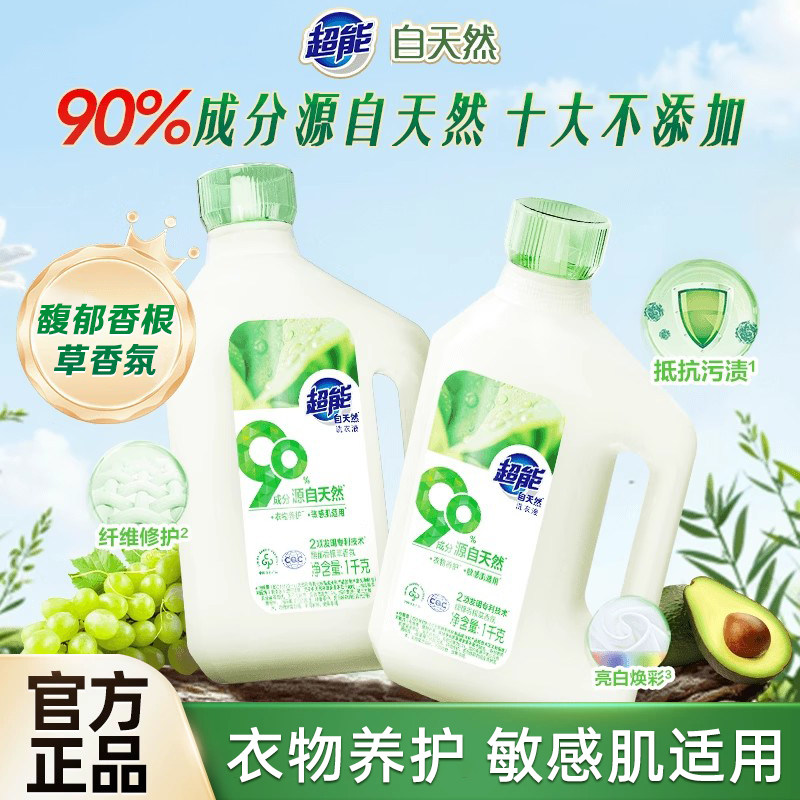 超能自天然洗衣液1kg亲肤护衣馥郁香根草香氛敏感肌宝宝衣物适用