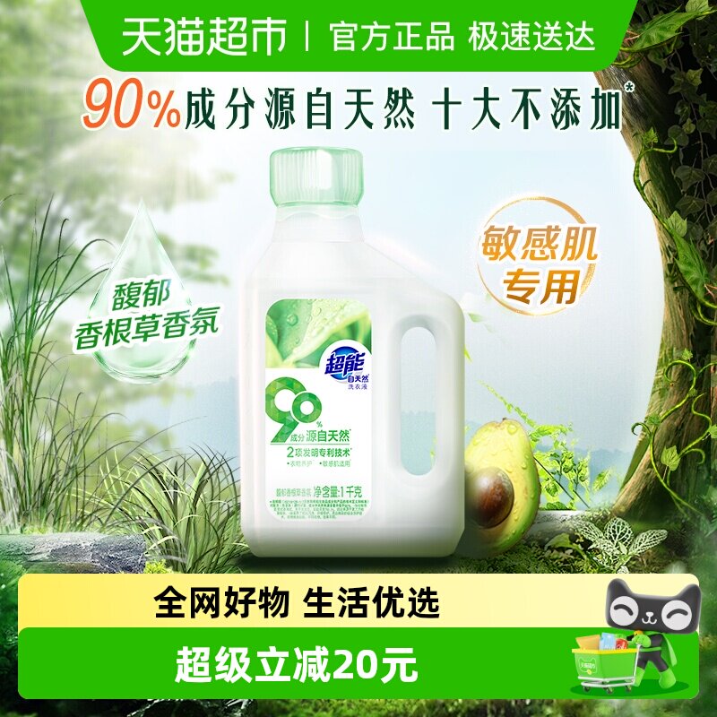 超能自天然洗衣液1kg香根草香氛成分天然亲肤不伤手敏感肌适用