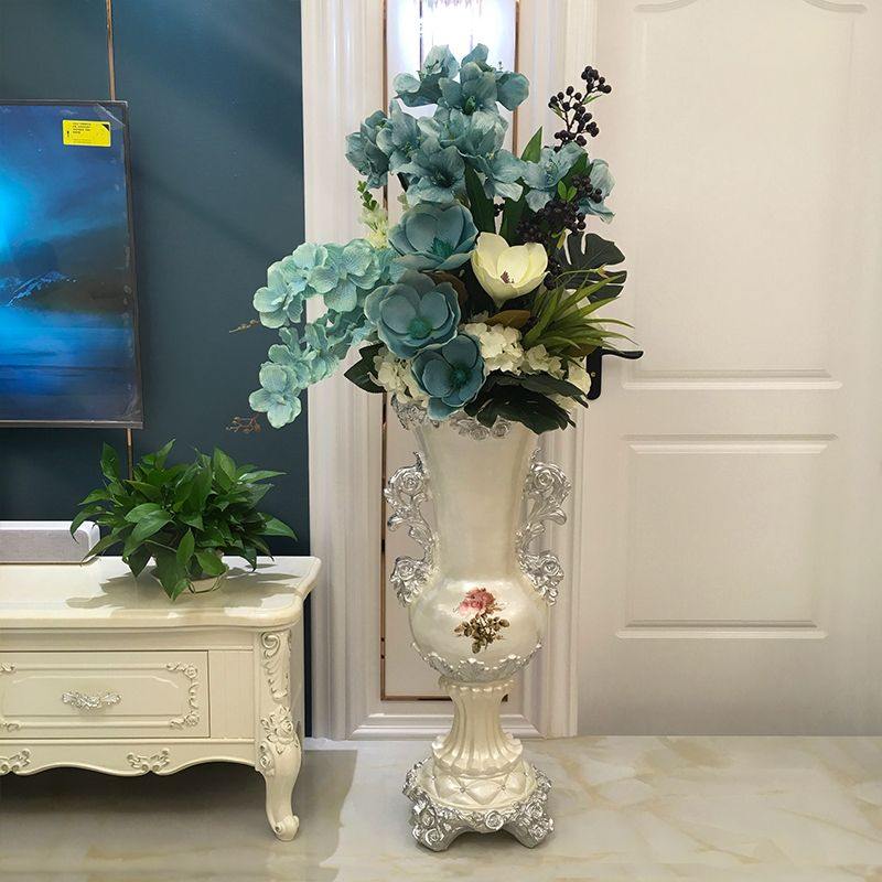 欧式落地花瓶客厅大号插花摆件仿真花套装装饰酒店玄关高干插花大