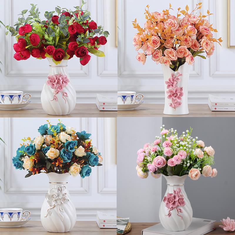 婚庆复古轻奢欧式陶瓷花瓶餐桌茶几装饰摆设仿真花假花艺摆花套装