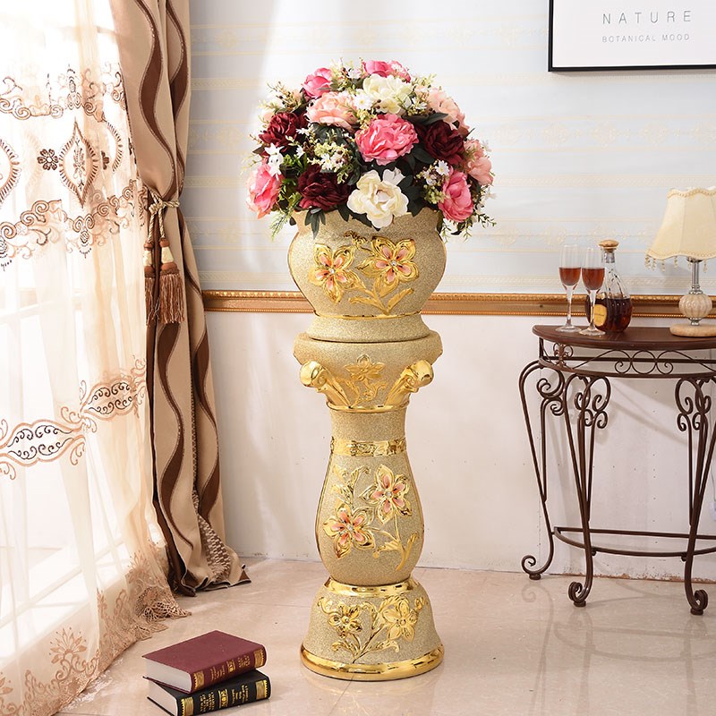 罗马柱高档落地大花瓶仿真插花艺套装摆件 客厅欧式现代酒店装饰