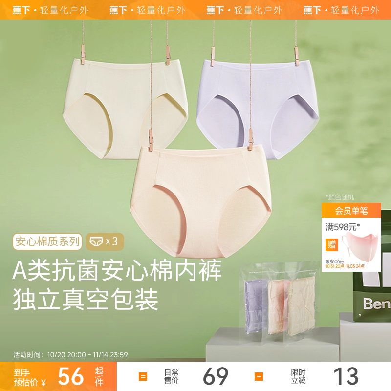 【详情领优惠】蕉下女士抗菌棉质内裤纯棉裆三角裤中腰亲肤不夹臀