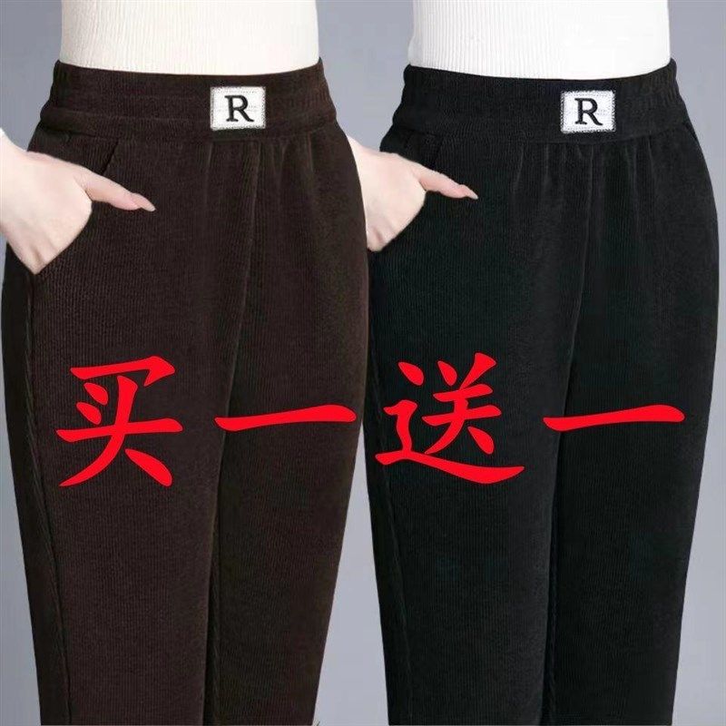 [买1送1]春秋冬加绒加厚妈妈裤雪尼尔休闲裤大码宽松显瘦直筒长裤