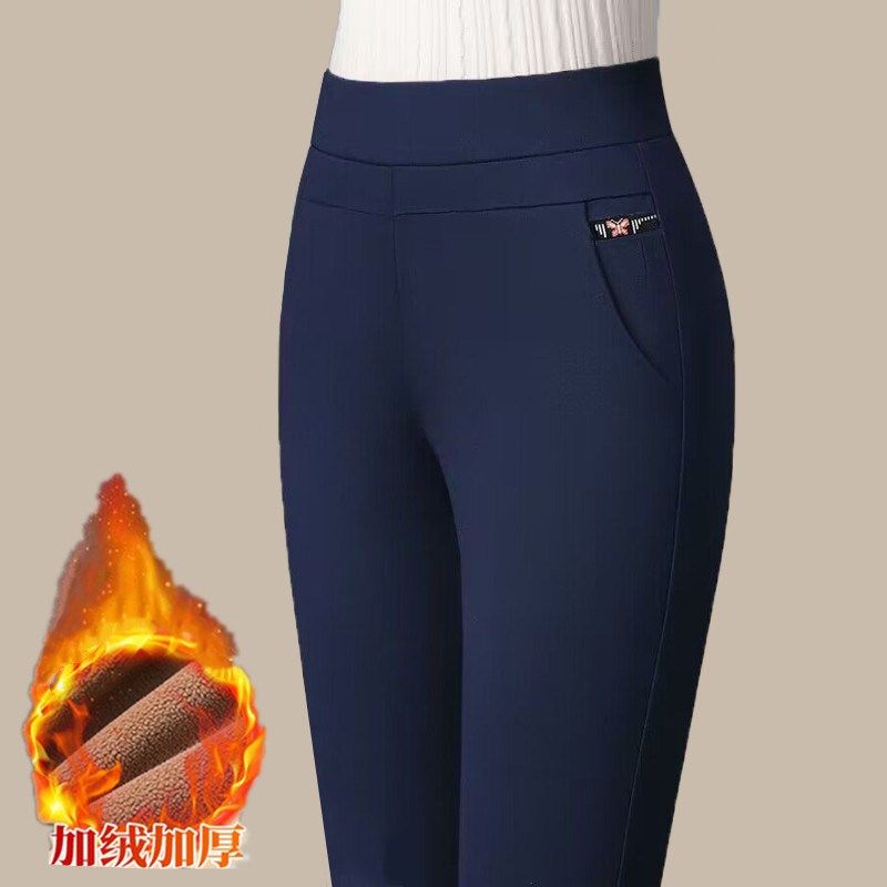 中年女裤外穿高腰大码宽松显瘦弹力加绒加厚纯色中老年休闲直筒裤