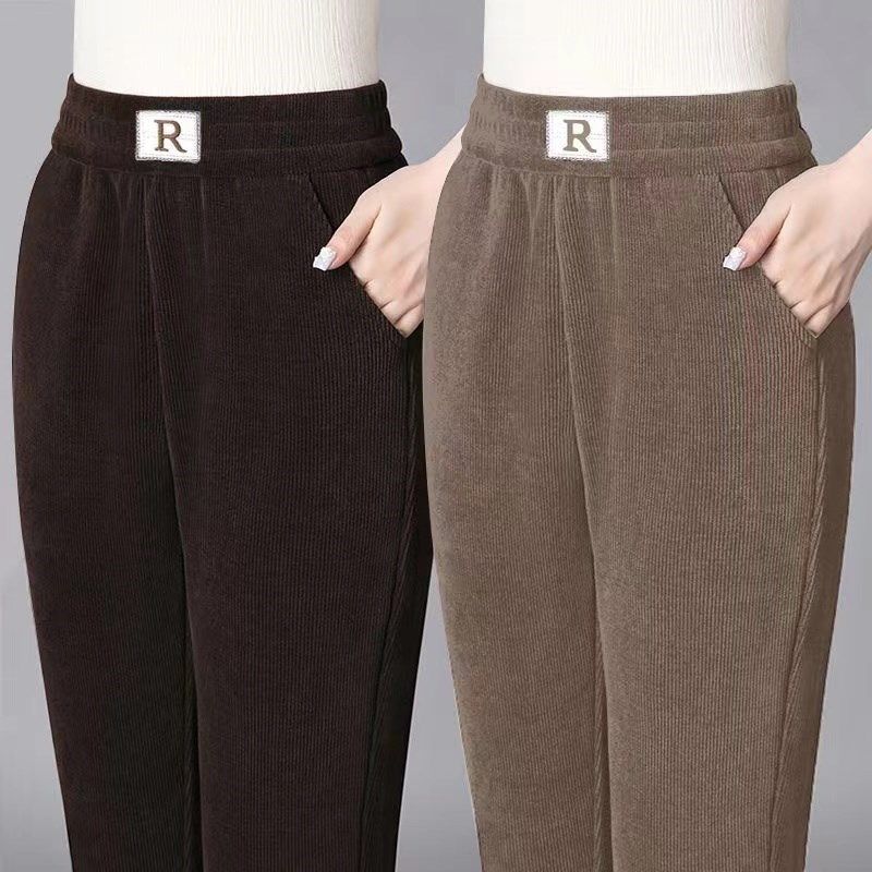 加绒加厚裤子女冬季新款雪尼尔宽松大码直筒哈伦裤妈妈休闲裤棉裤