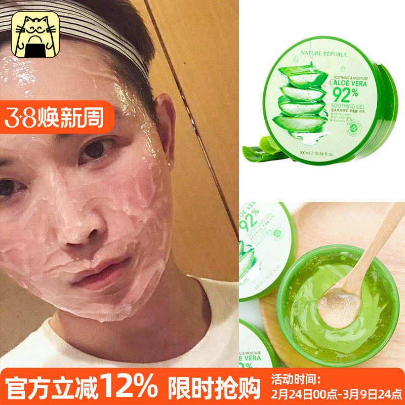 韩国Nature Republic芦荟胶自然补水保湿晒后舒缓修复凝胶乐园女
