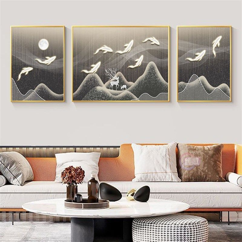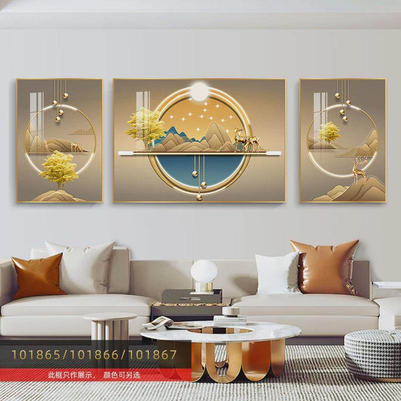 客厅装饰画挂画背景墙壁画网红大气轻奢几何鹿现代简约沙发三联画