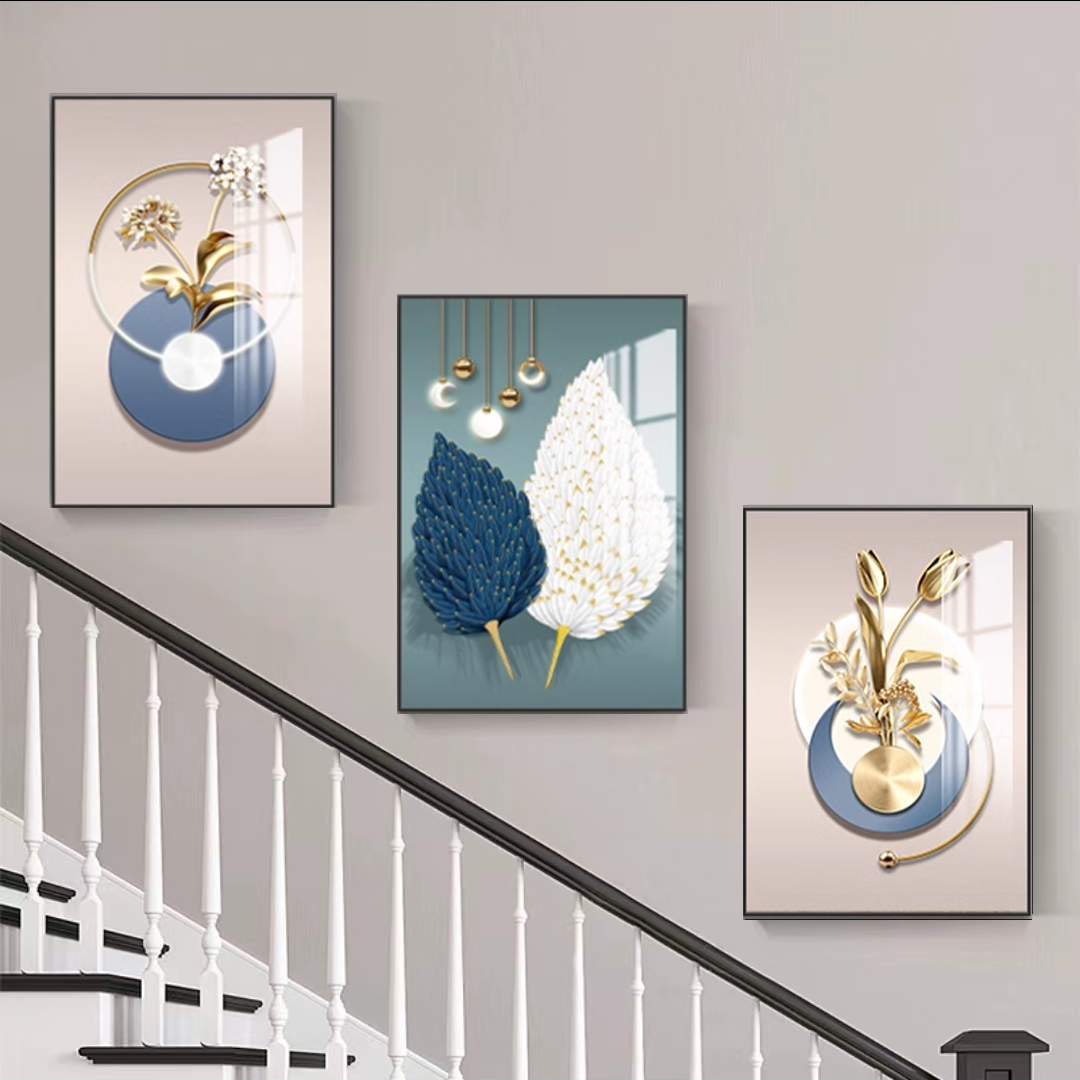 轻奢复式楼梯墙装饰画现代简约走廊过道背景墙挂画客厅沙发三联画
