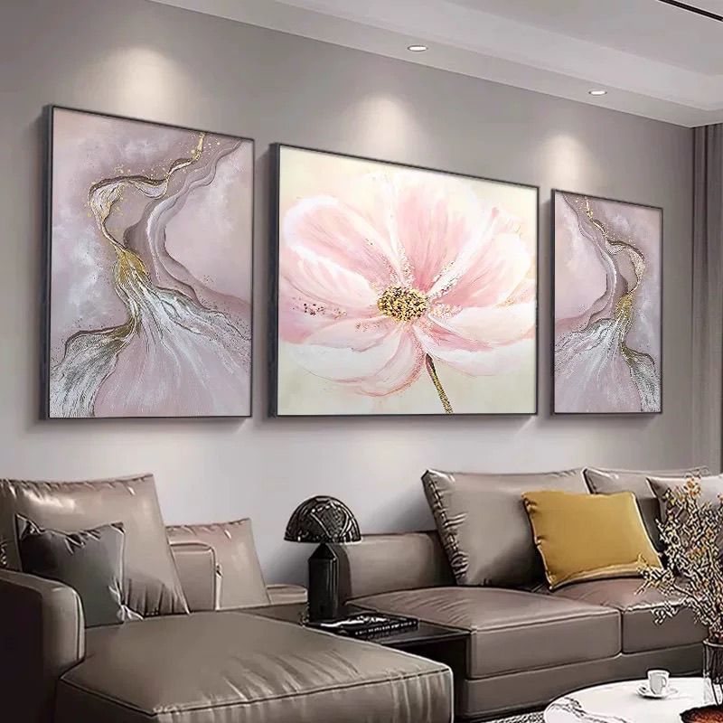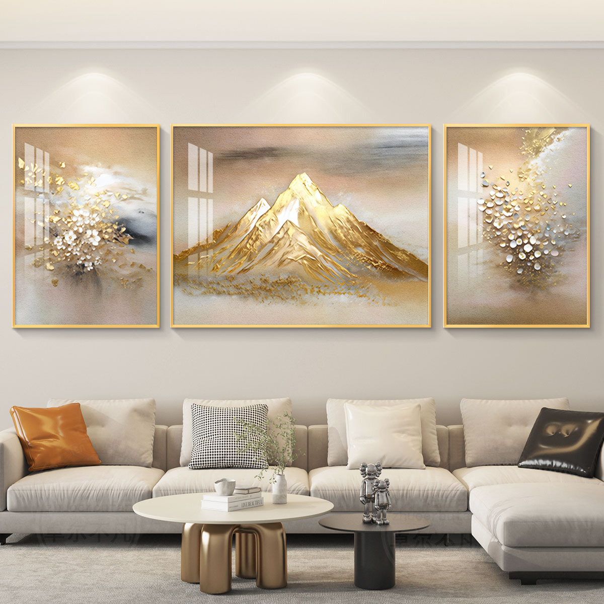客厅三联画现代轻奢壁画沙发背景墙挂画高档大气好寓意客厅装饰画