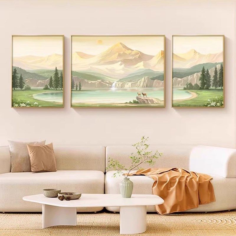 背景墙挂画壁画北欧轻奢现代风客厅大气装饰画沙发三联画麋鹿简约