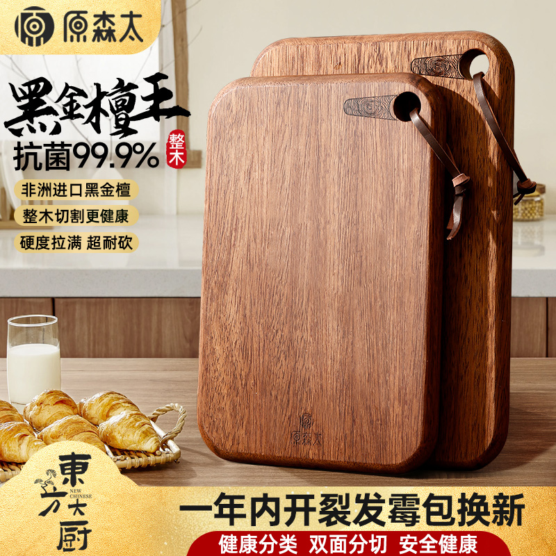 苏泊尔菜板乌檀进口非洲木防霉抗菌食品级家用整木切菜板砧板实木