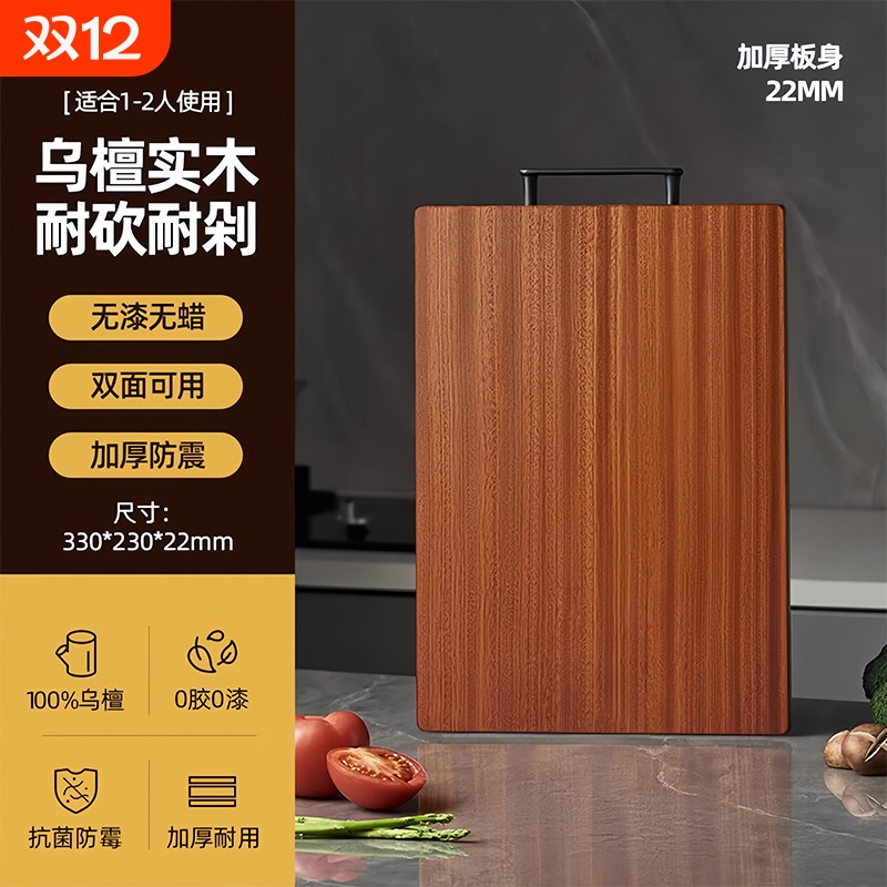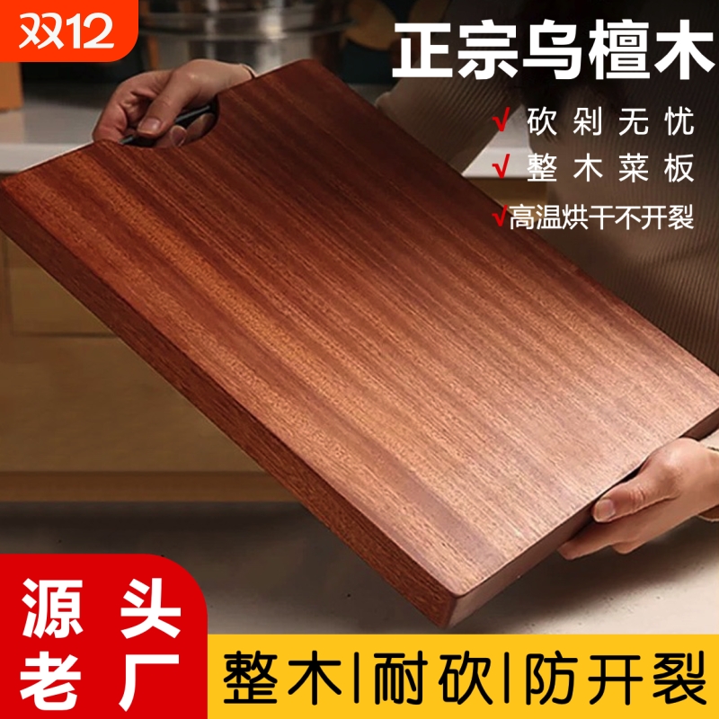 乌檀木菜板抗菌防霉家用食品级实木砧板厨房专用双面切菜案板粘板