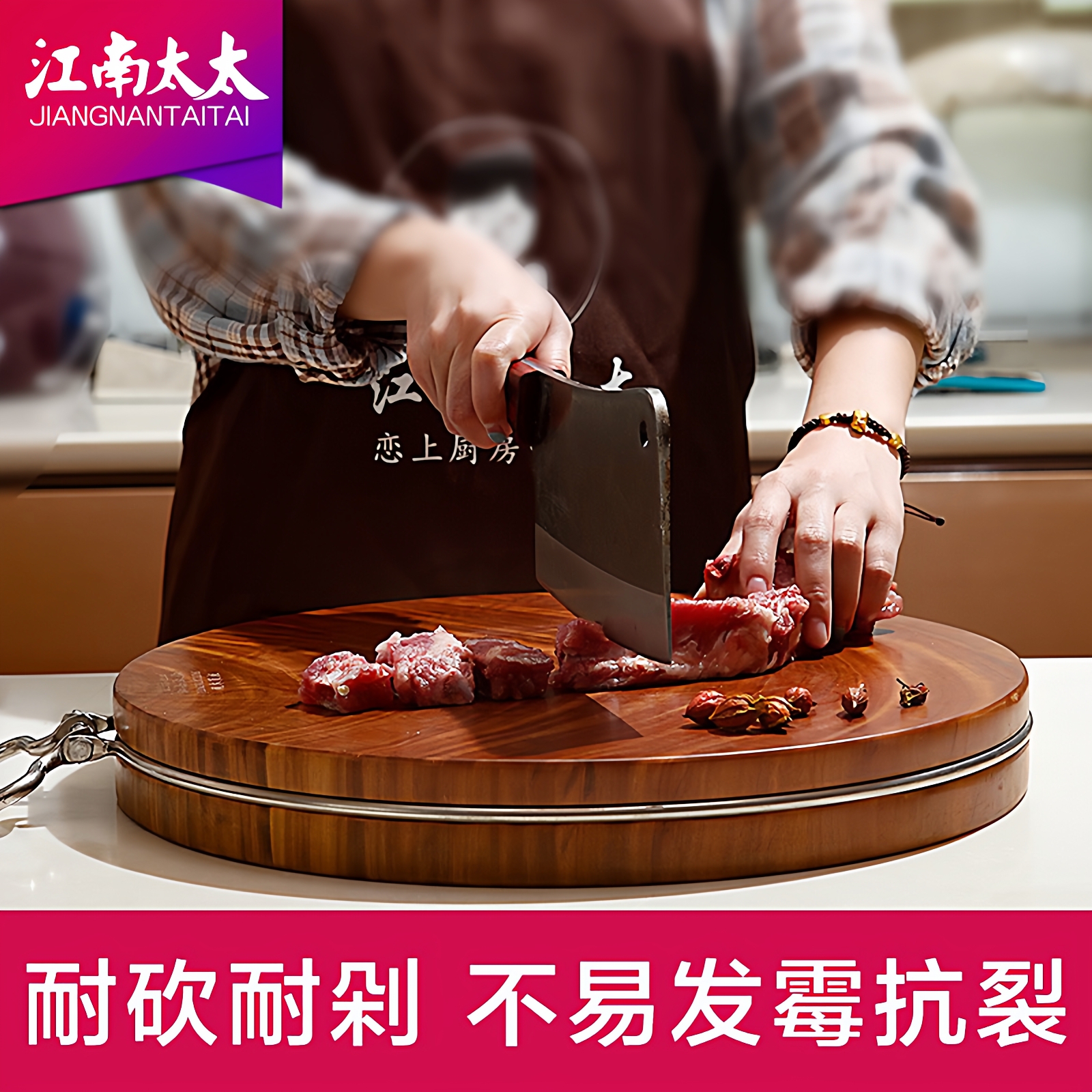 江南太太铁木砧板实木菜板家用菜墩厨房切菜板防霉整木圆粘板案板