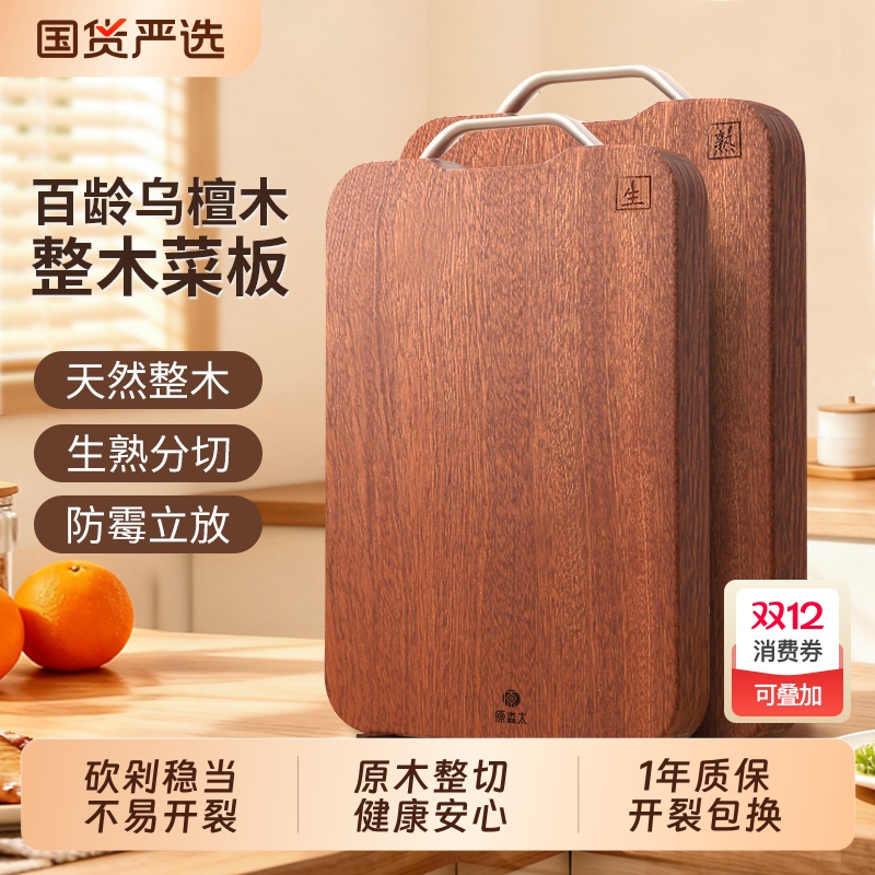 乌檀木整木菜板砧板实木国货甄选切家用厨房加厚案板木板木头双面