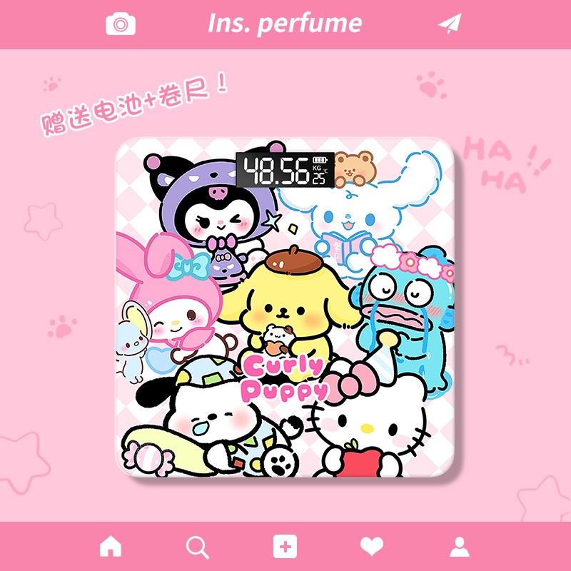 新款卡通库洛米美乐蒂玉桂狗网红高精度电子秤家用充电体重称便携