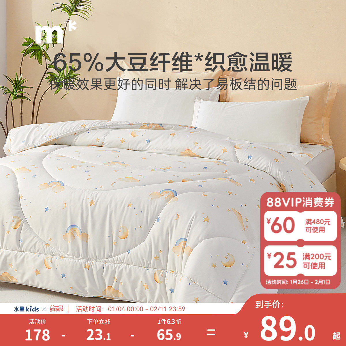 水星儿童被子被芯春秋/子母被四季通用秋冬宿舍保暖大豆被全棉A类