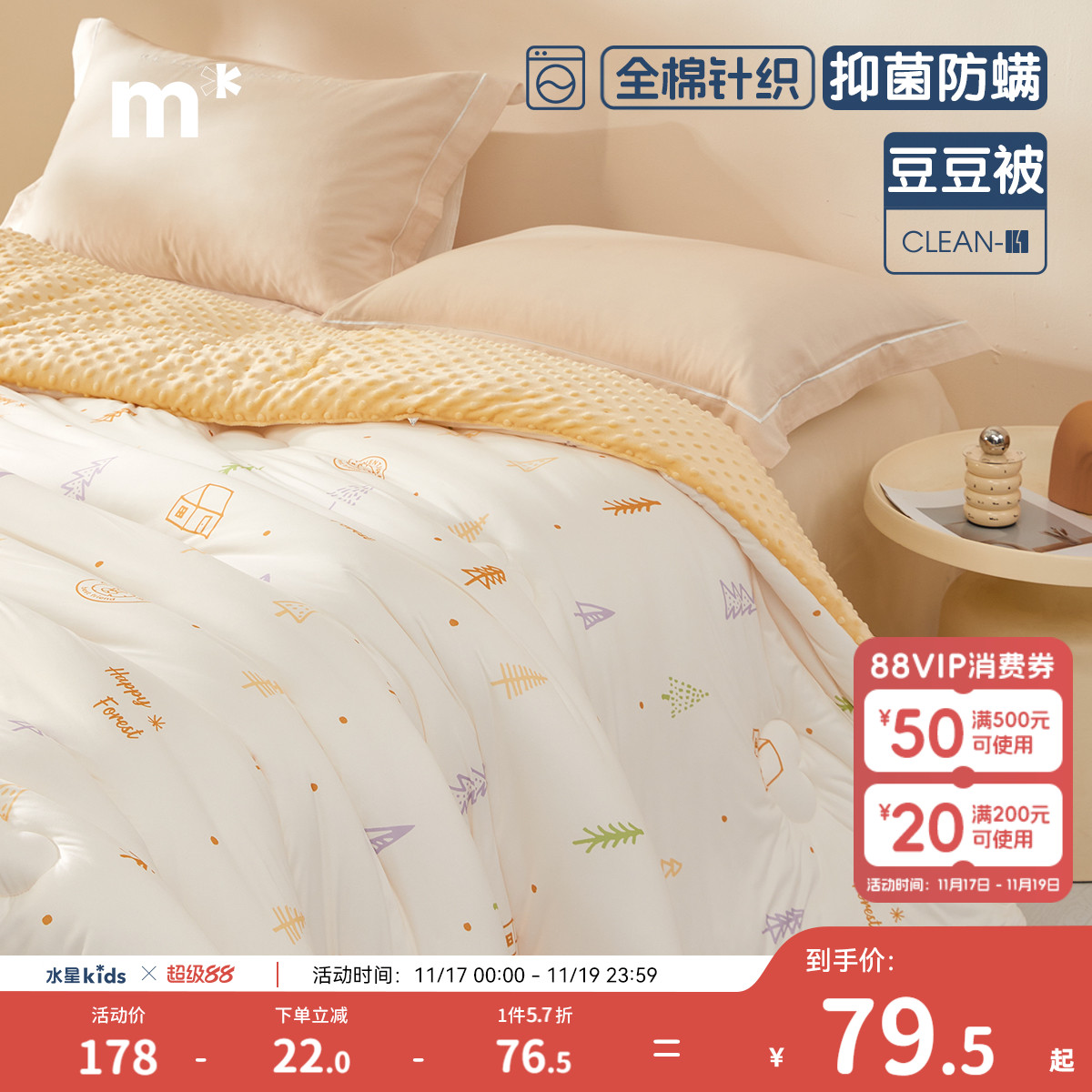 水星家纺儿童被子母婴A类抗菌保暖低敏冬被春秋被豆豆绒被芯床品