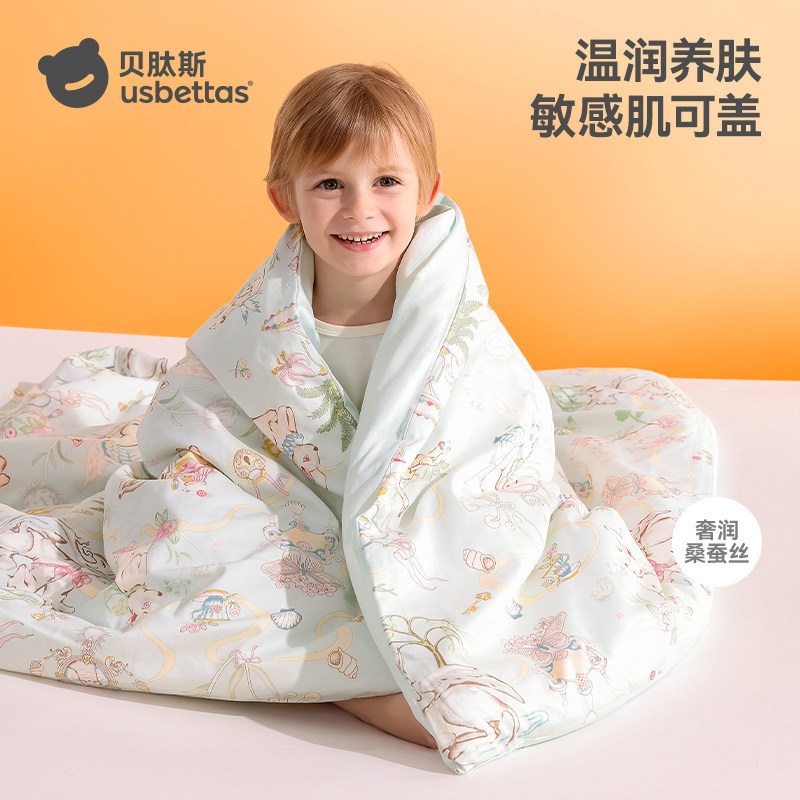 贝肽斯新生婴儿被子桑蚕丝宝宝专用秋冬被儿童幼儿园四季通用盖被