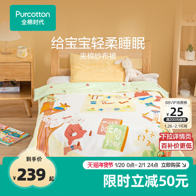 全棉时代儿童被子秋冬纱布夹棉被四季保暖透气纯棉纱被宝宝幼儿园