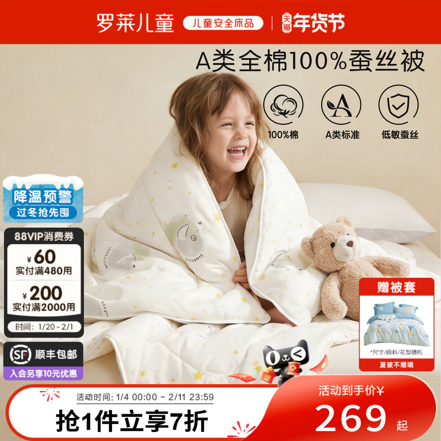 罗莱儿童a类100蚕丝被芯儿童被子全棉桑丝婴幼儿抗菌低敏被子母被
