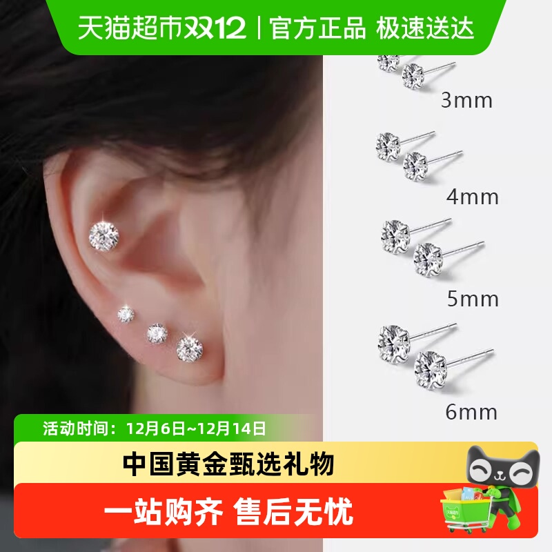 【中国黄金】珍尚银足银耳钉高级感女生养耳洞耳饰耳骨钉爆闪免摘