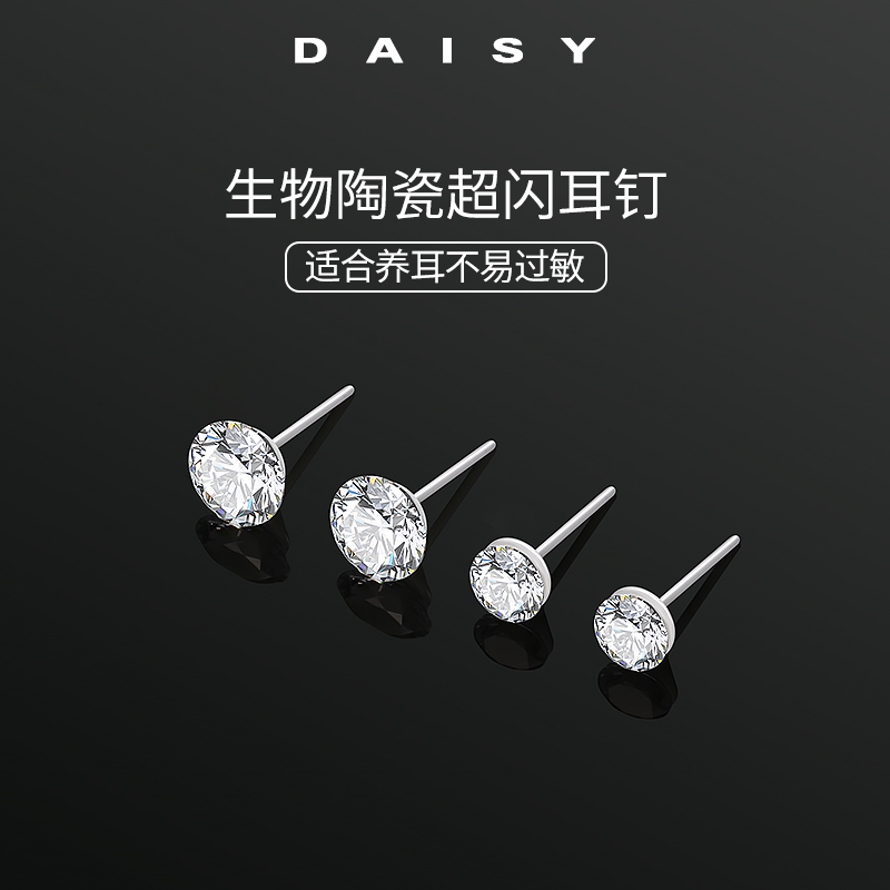 生物瓷钻石耳钉女简约超闪高级感睡觉免摘耳环养耳洞耳棒陶瓷耳饰