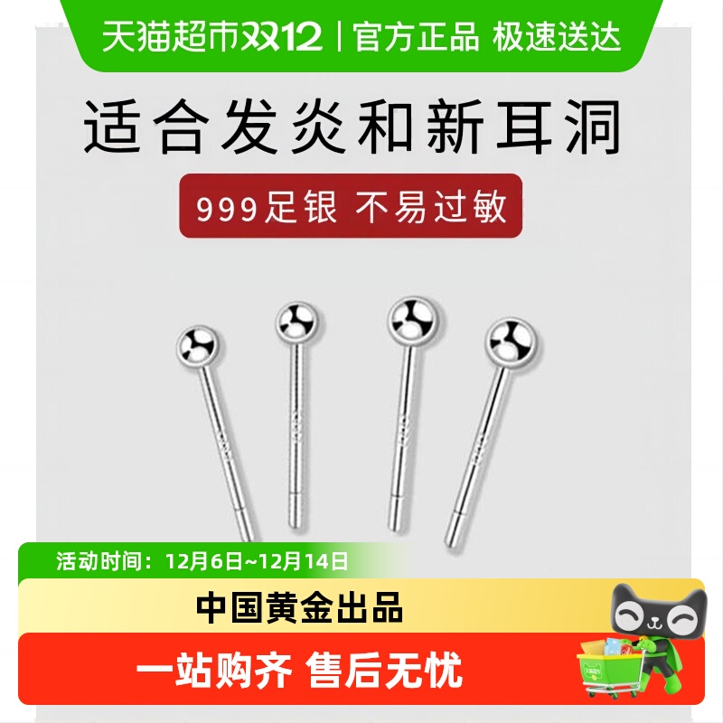 【中国黄金】珍尚银足银耳钉女养耳洞2025年新款爆款睡觉免摘耳饰