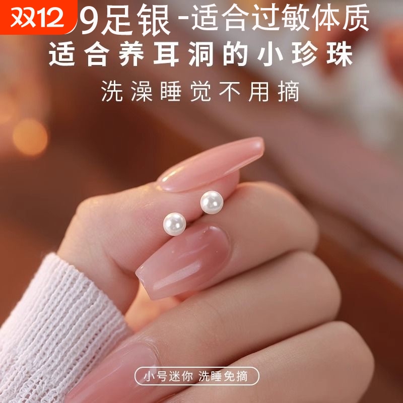 S999足银天然淡水珍珠耳钉养耳洞精致小巧睡觉免摘轻奢高级感耳饰