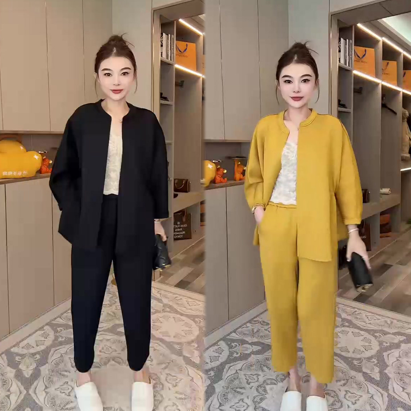 净版时尚套装女2026春季新款纯色中长款外套+高腰哈伦裤两件套装