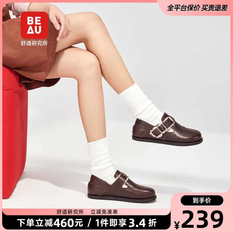 百思图春夏商场新款复古一脚蹬勃肯鞋懒人鞋女休闲单鞋BG318CA4