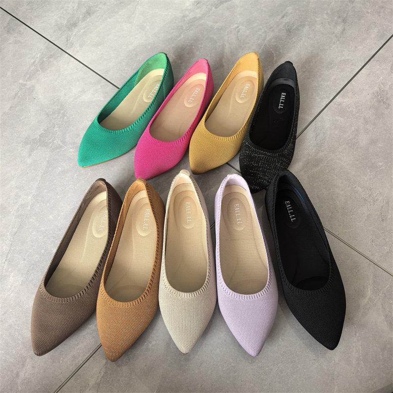 02025外贸新款女鞋平底尖头浅口飞织单鞋舒适百搭懒人鞋女鞋