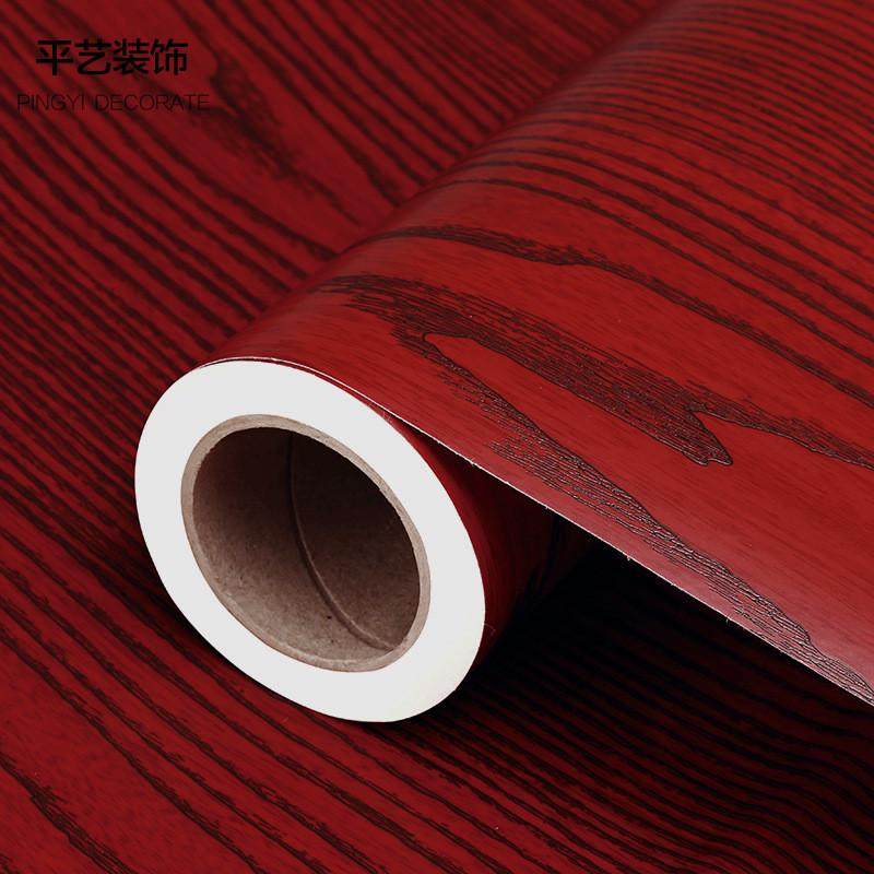 加厚防水自粘墙纸家具门框桌面翻新红色木纹贴纸仿木实木纹纸壁纸