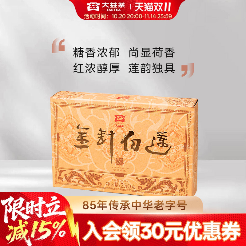 大益普洱茶金针白莲普洱熟茶250g砖茶高端品质官方旗舰店仓储正品
