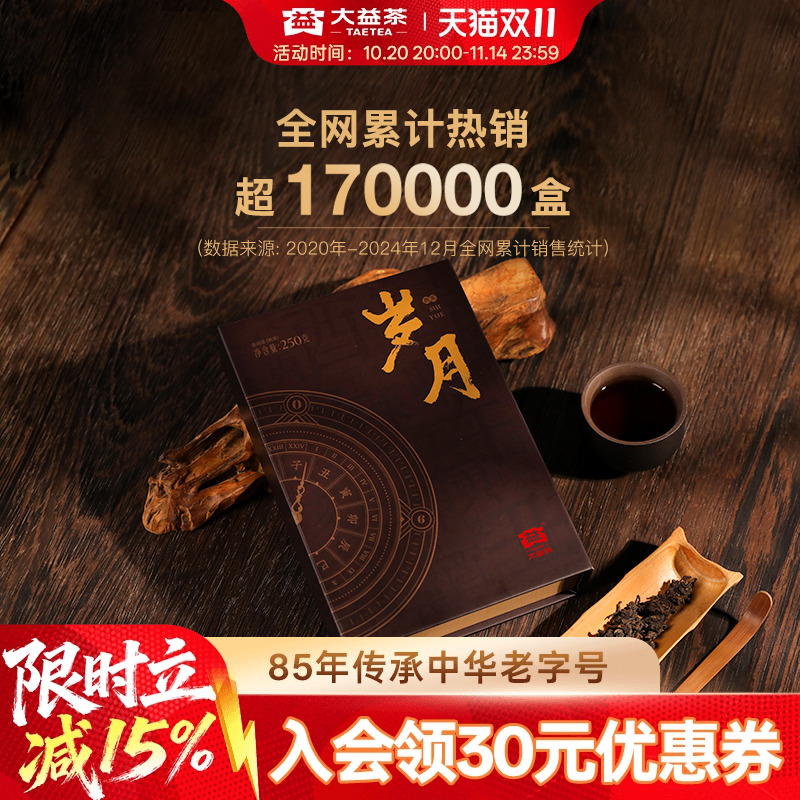 大益普洱茶 岁月普洱熟茶250g砖茶礼盒 云南勐海正品 官方旗舰店
